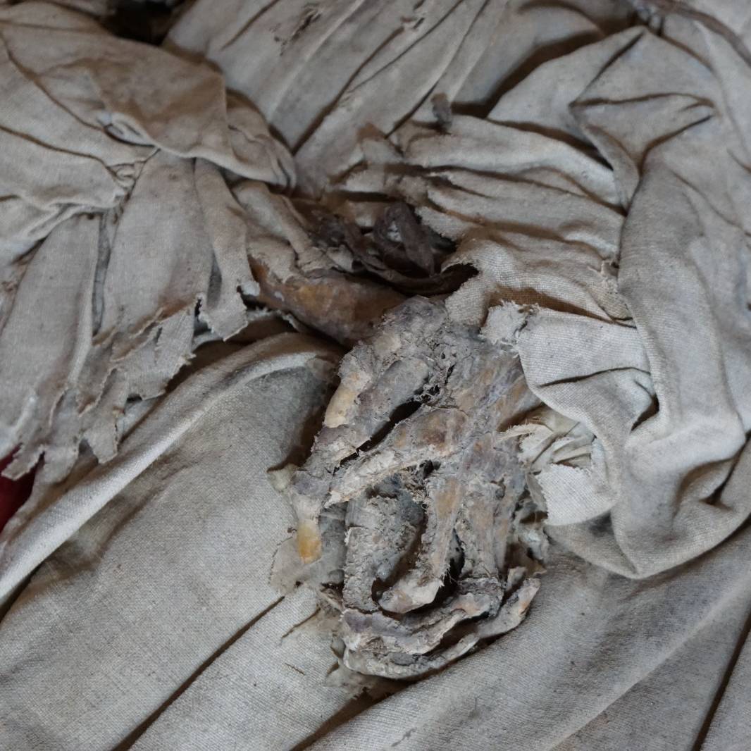The natural mummy of an adult woman was found in the crypt of the church of “Saints Jesus and Mary”…