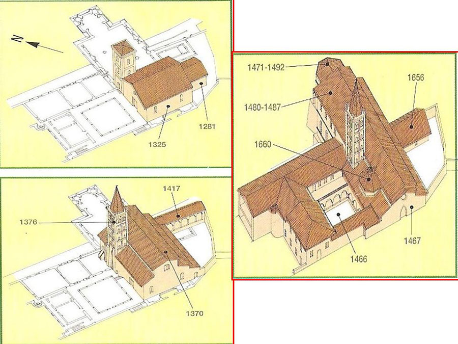 - 1466 : Costruzione del chiostro quadrato a nord-ovest.